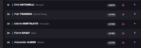 Q2被淘汰选手:安东内利、角田裕毅、博托莱托、加斯利、阿尔本