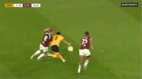 43’黄喜灿主罚点球中柱,戈麦斯补射破门,狼队1-0西汉姆联
