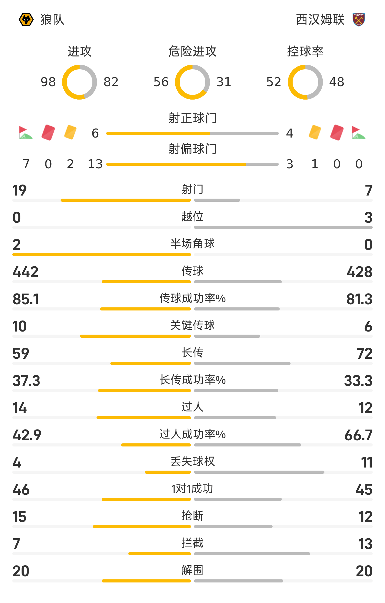 全场比赛结束,狼队3-2西汉姆联
